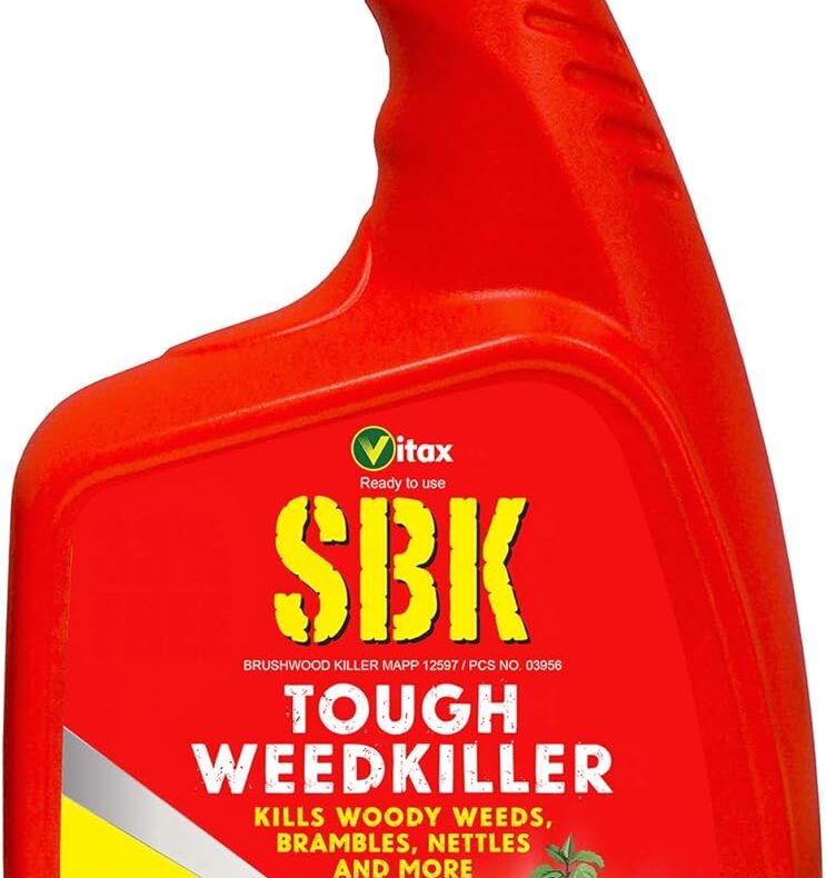 Vitax SBK Brushwood Killer Tough Weedkiller, Suitable For brambles, nettles, dock, woody weeds, hardwood & tree stumps, Targets weeds not grass, Ready To Use – 1L