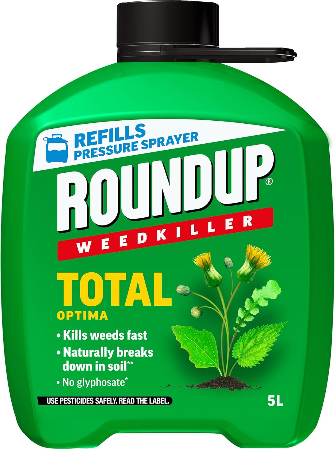 ROUNDUP Weedkiller Total Optima can be used on weeds in flowerbeds, borders, pots, containers and vegetable patches as well as paths and patios. It’s most effective on young weeds smaller than 10 cm.